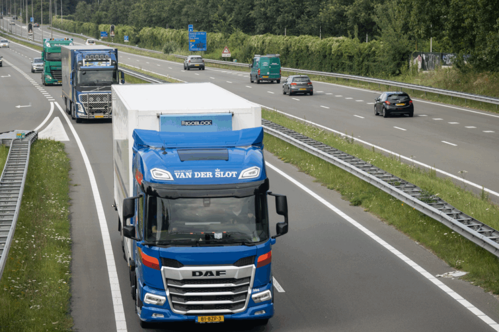 Het wagenpark bestaat uit moderne Euro 6-trucks, bakwagens, trekkers met oplegger en LZV’s. Speciale kenmerken zijn geluidsarme laadkleppen, motor‑stopfunctionaliteit en veiligheidsinnovaties zoals dashcams en irisscanners. Trucks worden deels gewassen met regenwater en het kantoor draait op zonne-energie.